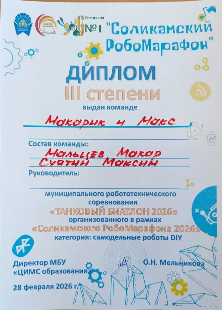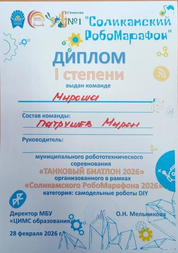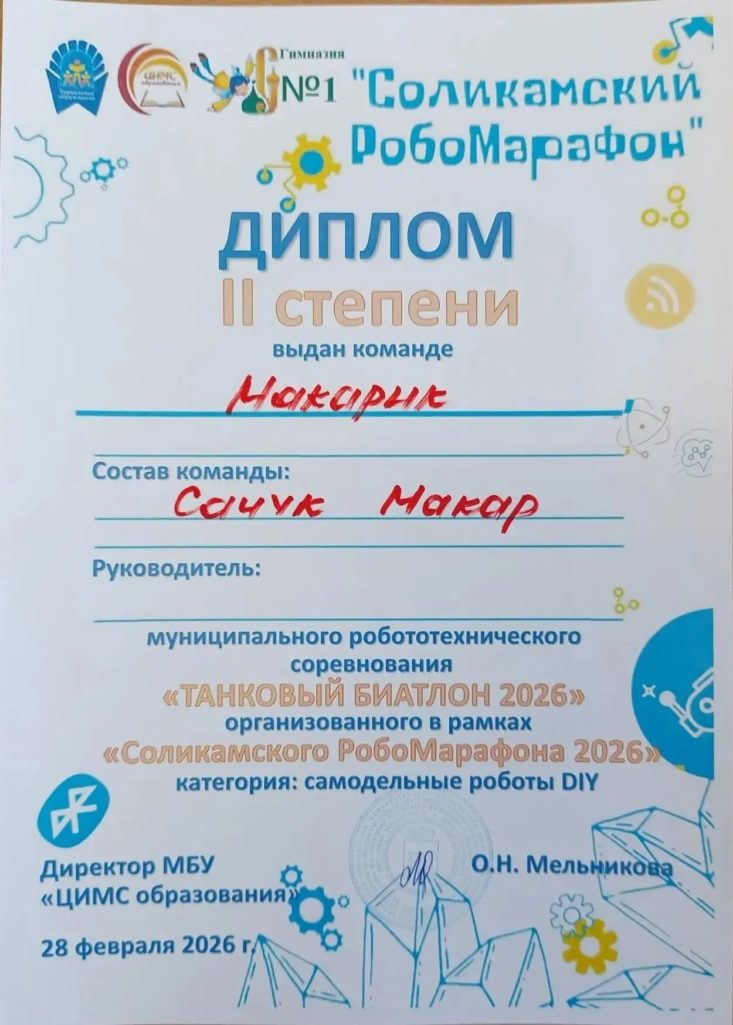1 место — Патрушев Мирон 2 место — Сачук Макар 3 место — Мальцев Макар и Суятин МаксимЭто не просто победа, это результат огромного труда, усидчивости и настоящей инженерной смекалки. Ребята, вы доказали, что нашим самодельным роботам нет равных! Мы очень вами гордимся! ![]() ![]() Отдельные, самые искренние слова благодарности хочется сказать человеку, который вложил душу в каждую деталь этих роботов — нашему замечательному педагогу-наставнику Андрею Николаевичу Николаеву. Андрей Николаевич, спасибо вам за этот неиссякаемый огонь в глазах, за то, что учите ребят не просто собирать конструктор, а мыслить, творить и побеждать! Вы — настоящий кузнец чемпионов! И конечно, огромное родительское спасибо мамам и папам наших победителей! Спасибо за то, что поддерживаете увлечения детей, возите на соревнования, верите в них и не жалеете времени на их развитие. Без вашего тыла эти победы были бы невозможны. ![]() Вместе мы — сила! Вперёд, к новым вершинам! ![]()